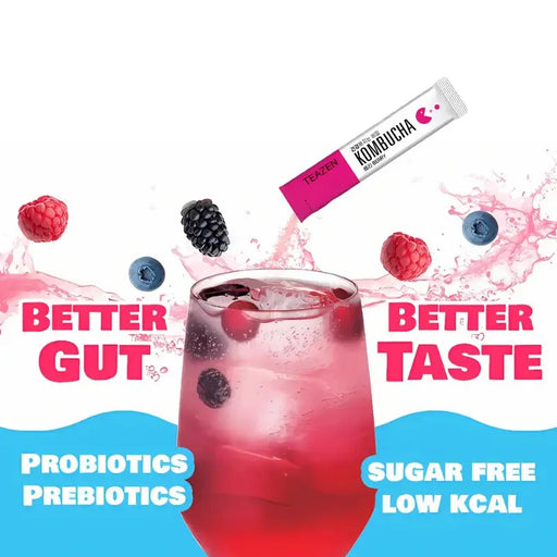 Disfruta del equilibrio perfecto entre sabor, salud y frescura con TEAZEN Kombucha Berry, el té fermentado coreano que combina el poder de 12 cepas...
