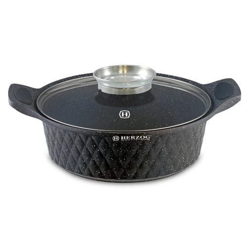 Herzog HR-5220: cacerola poco profunda revestida de mármol con diseño de diamante de 28 cm y pomo aromático - 4 L